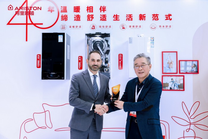 本次展会,阿里斯顿携全系核心产品与本土化发展成果亮相,全方位展现品牌的深厚积淀与行业影响力。展会现场,国家燃气用具质量检验检测中心刘彤主任为阿里斯顿颁发“中国暖通行业特别贡献奖”,以表彰品牌四十载扎根中国、与行业共成长的坚守与实干。这份权威荣誉,更是对阿里斯顿坚守初心、践行行业价值的高度认可。
