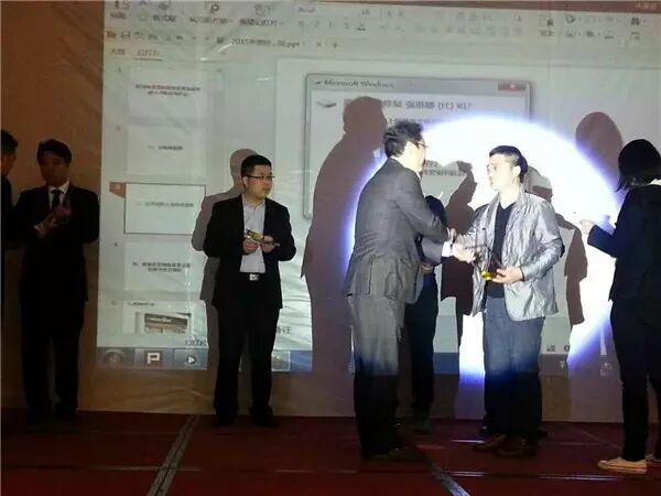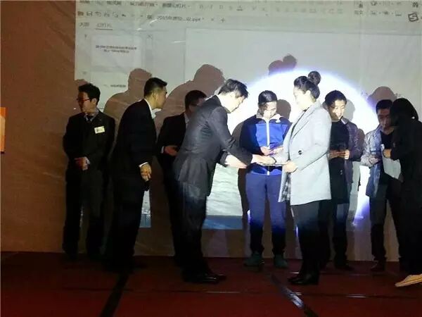 结束前,现场新增了微信抽奖环节。图为主持人周相含为获奖者颁发礼物---庆东纳碧安特别订制的随手杯。