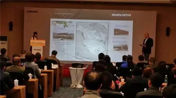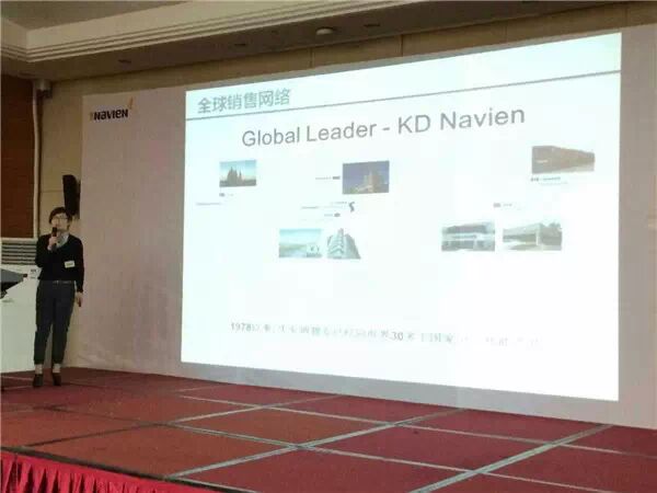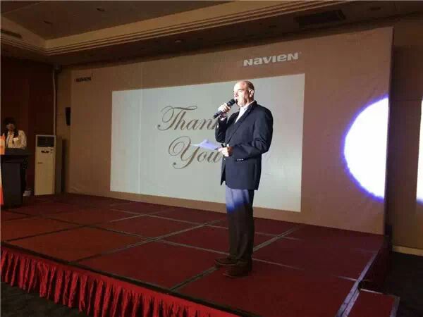 首先,由金容范董事长致辞。 他说, 庆东纳碧安继在韩国锅炉行业市场占有率42.5%(韩国统计厅官方数据),美国纳碧安冷凝热水器,冷凝壁挂炉方面市场第一,俄罗斯燃气壁挂炉市场第一之后,现在集团的目标是中国第一。他会从“产品品质”、“售后服务网络的构筑”、“产品品种的多样化”三个方面着手强化庆东纳碧安在中国的市场地位。