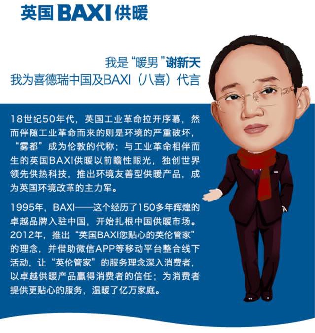 “暖男”谢新天——喜德瑞中国及BAXI (八喜)代言人