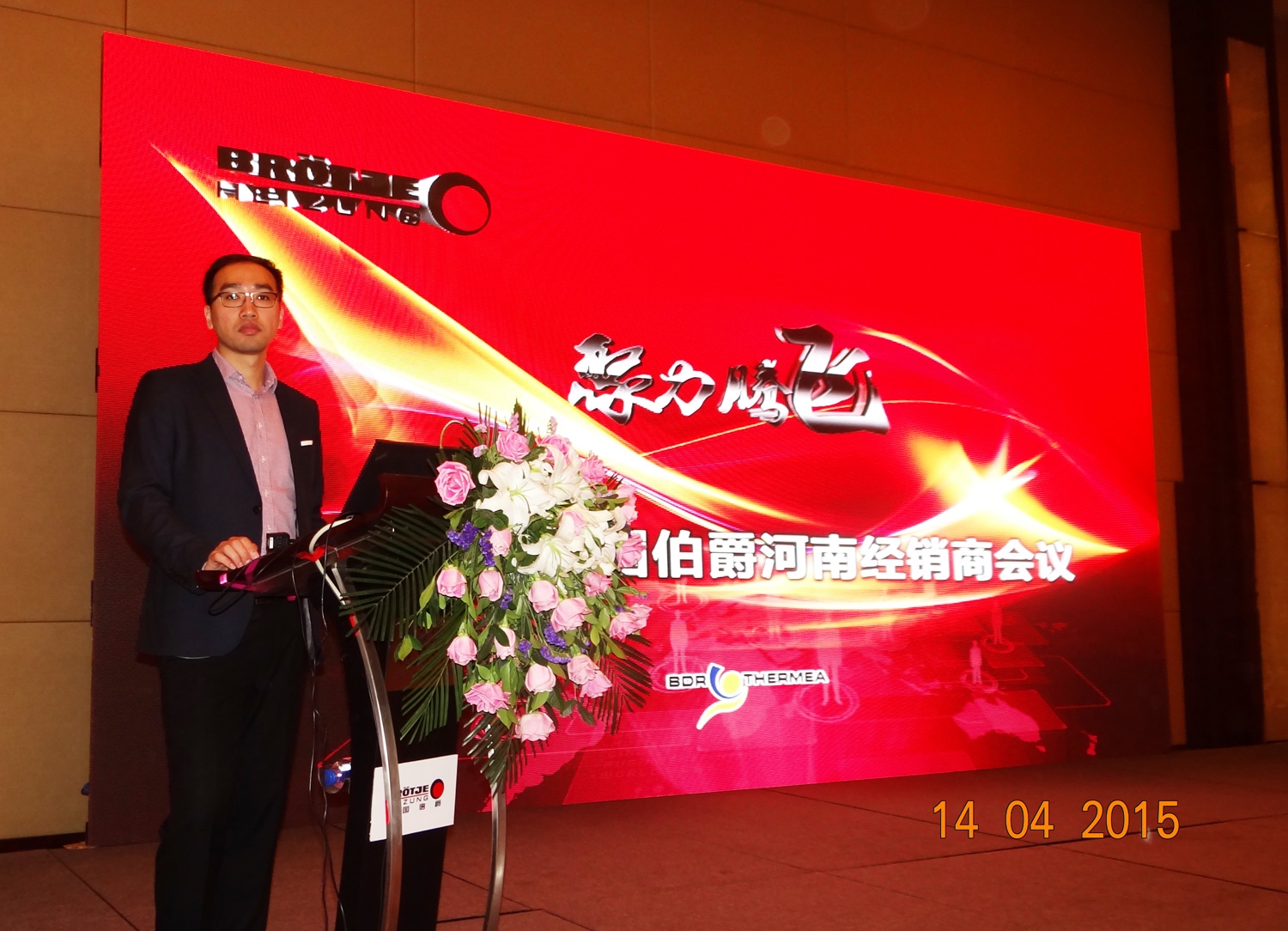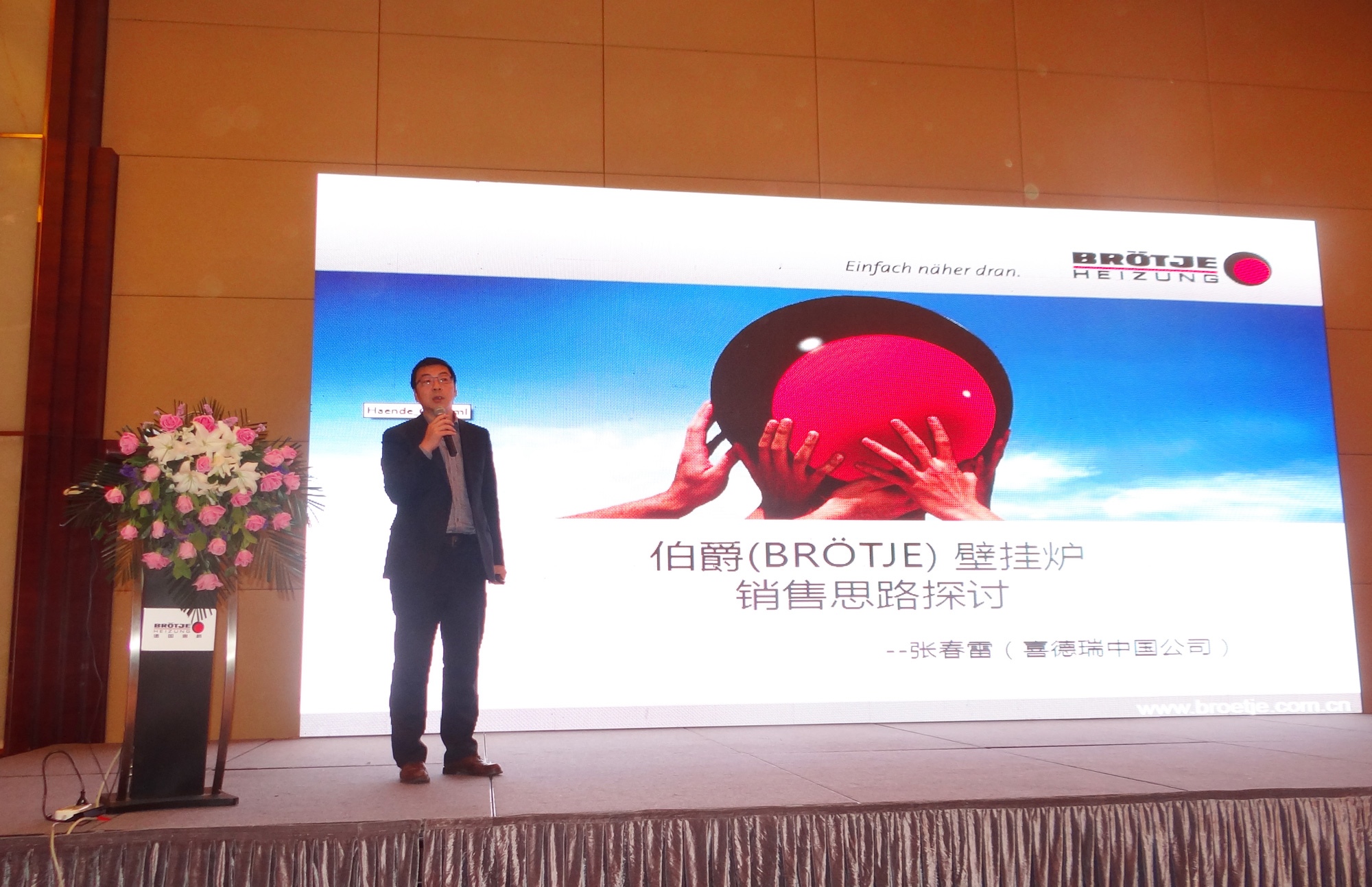 随后,喜德瑞中国市场推广经理郑伟铭做了市场发展的介绍,就目前伯爵壁挂炉的市场成绩和未来发展构架与在场嘉宾作了分享。